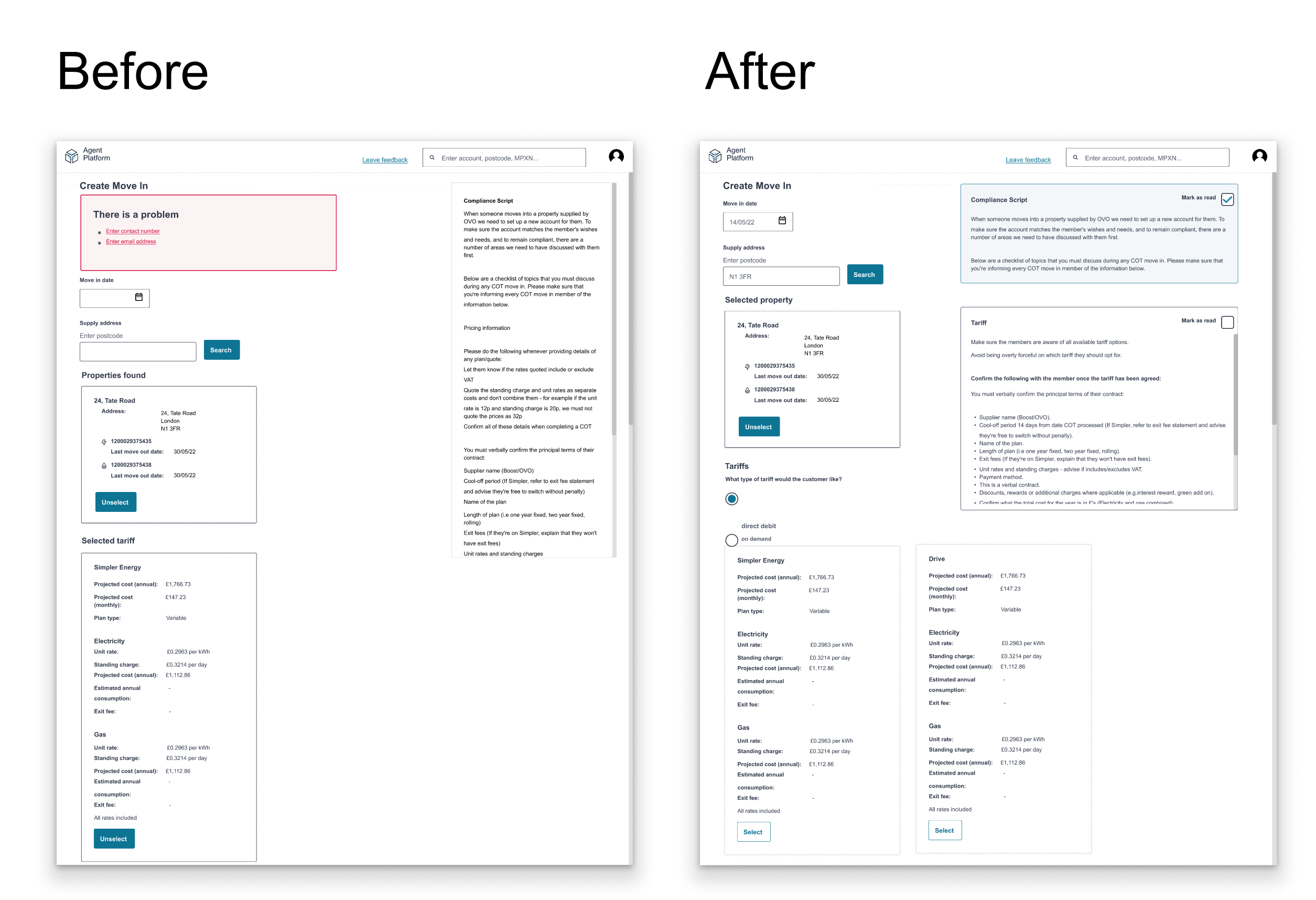 The move-in process is now a smoother experience for both agents and customers. Agents found the updated script intuitive and easier to follow during interviews. Observing them interact with it confirmed that it was significantly more user-friendly than the previous design.